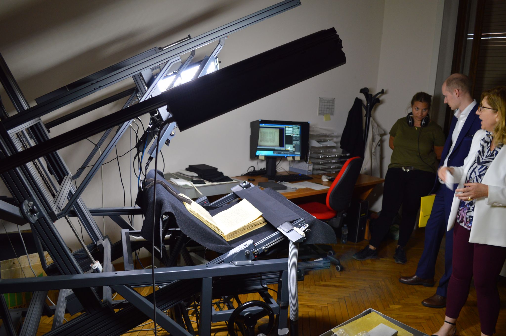 Если кто не знает, то в библиотеках при оцифровке не используют привычные нам по офисной работе планшетные сканеры. На этих сканерах, во-первых, ломается корешок книги, а во-вторых, тепло от лампы, проезжающей под книгой, губительно для страниц.