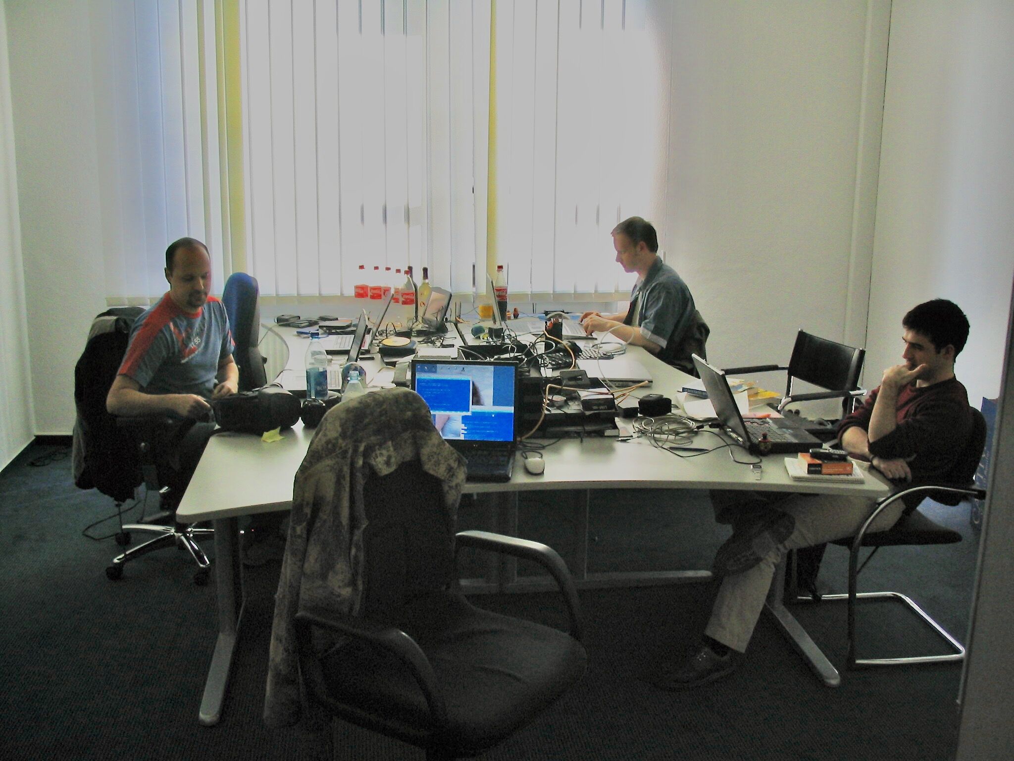 На фото – моя командировка в 2005 году в штаб-квартиру компании YellowTab, которая в то время разрабатывала операционную систему Zeta на базе BeOS. За полдня мне удалось добавить в эту ОС поддержку NTFS, что принесло Paragon’у 40 тысяч долларов от YellowTab. Собственно, это мы и отмечаем в баре с разработчиками YellowTab на второй фотографии (как-то скромно отмечаем, не находите?).