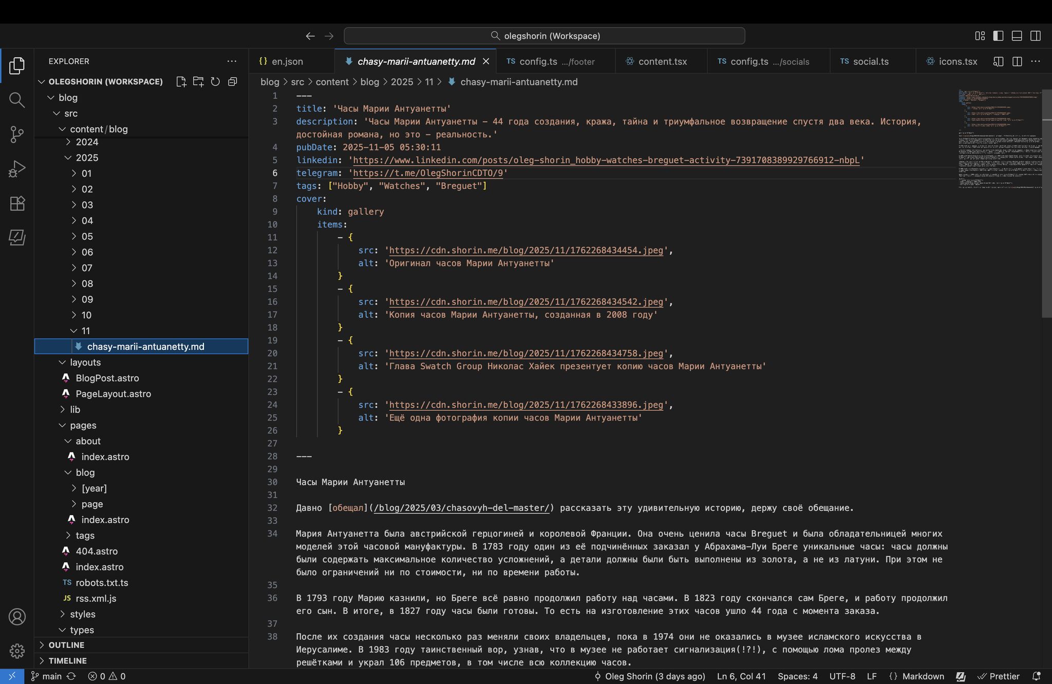 Для создания своего блога я выбрал фреймворк под названием Astro. Как говорится на сайте самого этого фреймворка: Astro is a JavaScript web framework optimized for building fast, content-driven websites. Как мне кажется, идеально подходит под определение блога. Да, пришлось изучить ещё один новый фреймворк! Но когда знаешь уже более трёх десятков различных языков программирования, то изучение нового диалекта – сущая ерунда.