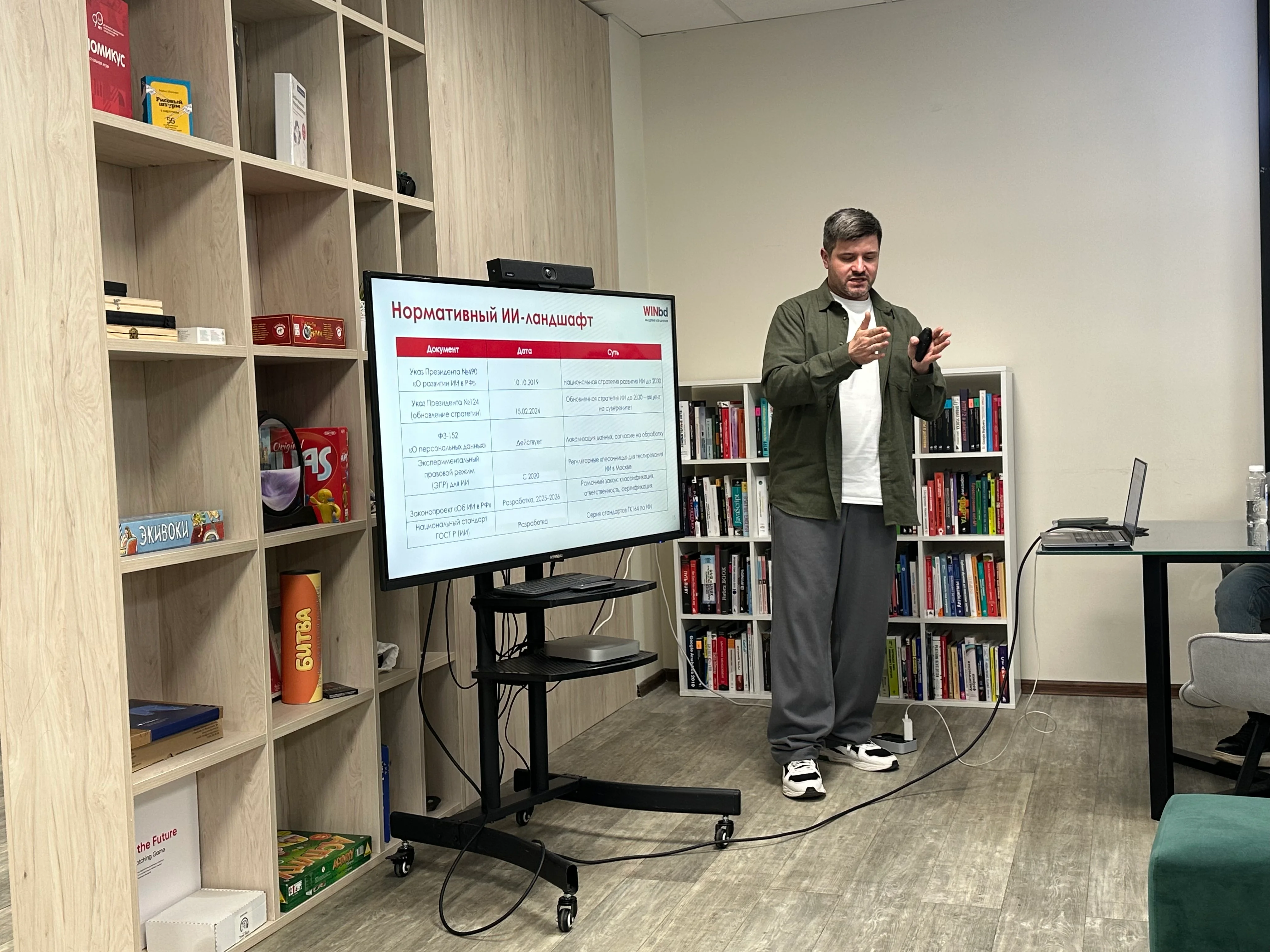 Второй доклад был посвящён вопросам обучения сотрудников различным аспектам использования ИИ. Доклад представлял Данила Драпеза – руководитель центра компетенций по ИИ и нейросетям группы компаний WINbd (см. второе фото). Он рассказал, как глобальные цели, поставленные высоким руководством компаний, трансформируются в последовательность взаимосвязанных задач, которые решаются в тесном контакте преподавателей команды WINbd и сотрудников компании, в которой происходит, не побоюсь этого словосочетания, цифровая трансформация.